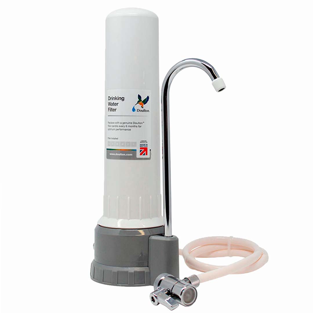 El purificador de agua sobre mesada DOULTON HCP está fabricado en plástico de calidad alimentaria; la máxima calidad según las normas y exigencias europeas. Contiene un filtro cerámico de 4 etapas y es de conexión muy fácil a la canilla.